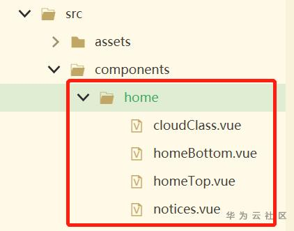 大家可以看到,我新建了个目录,把首页用到的组件,都放到home目录下了,这样能开发清晰一些。