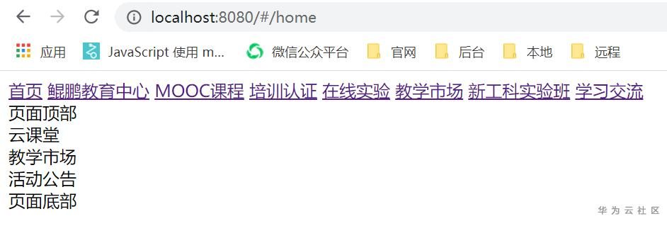 因为我做的是华为WEB全栈第三阶段的作业哈,在第一阶段,我已经写过了首页了,所以我把我之前首页的内容做了拆分,直接填入到各个组件内部了,然后把样式统一放到了assets目录下的public.css文件里了: