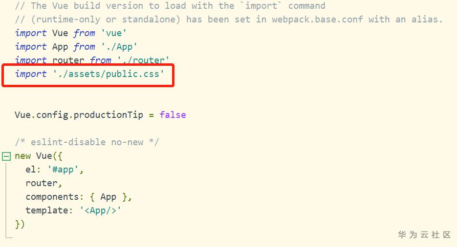 因为我之前写的样式有点乱,把样式做拆分有点费劲,所以我就直接放到public.css文件里,然后再main.js文件里引入,当做全局样式来调用了: