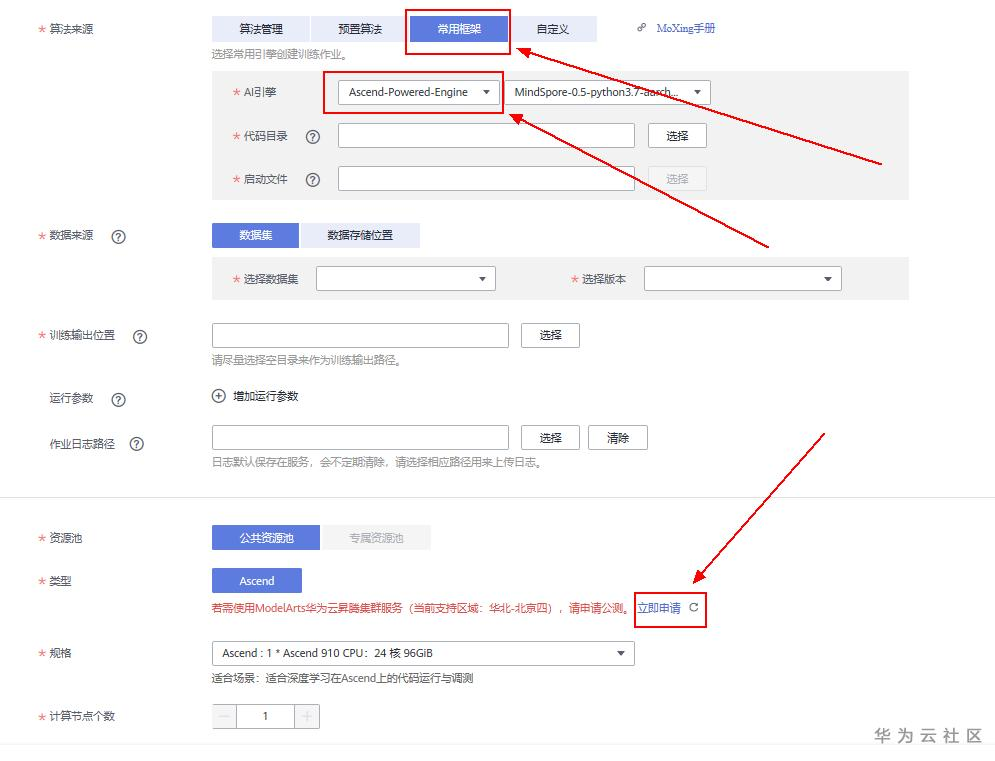 选择常用框架,Ascend,能够看到申请页面
