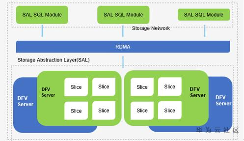 其次是 SAL(存储抽象层),它是SQL节点和存储层之间的桥接器。如下图所示,SAL包括两个主要组件,SAL SQL模块和DFV存储节点内部的Slice存储。