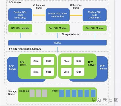 采用华为下一代云存储(DFV)作为快速,可扩展,可靠和共享数据库存储,不复制存储层中的已有功能,例如数据复制,跨AZ可靠性,数据清理。