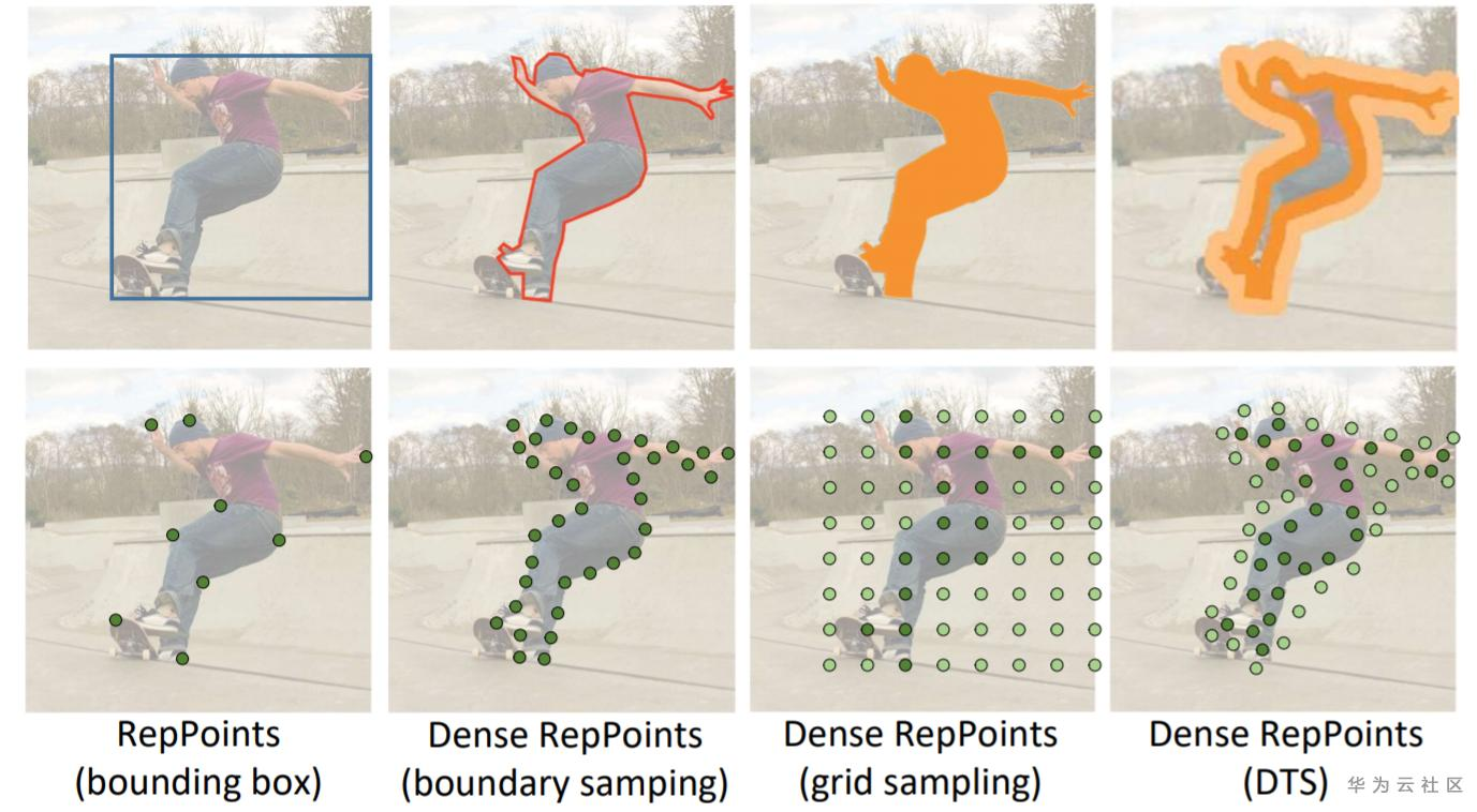 以点集(RepPoints)这种方式来表示目标能在精度和计算量上取得非常好的平衡,并且后处理简单。在使用点集的基础上,在部分任务上,还可以引入V2中的验证分支,来实现更精细的检测,同样也可参考Dense RepPoints,将Deformable Conv换成更加通用的点采样来实现,让模型更具拓展能力和表达能力。
