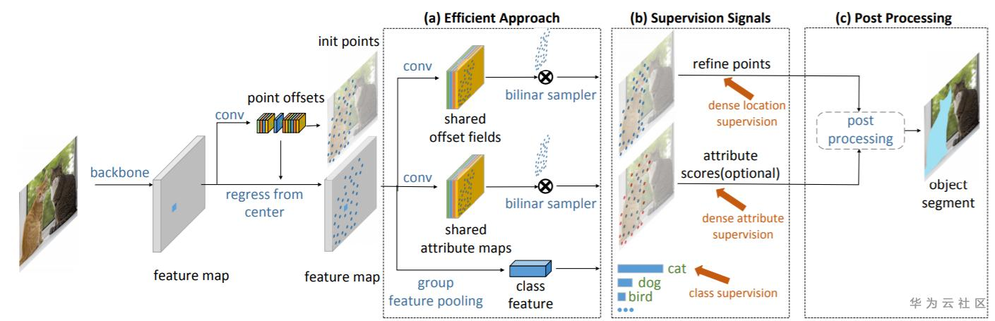 ,这些点只包含了位置信息,无法表示物体更精细的结构,难以应用于实例分割任务。相比于RepPoints, Dense RepPoints使用更多的点表示物体,并增加了每个点的属性信息: