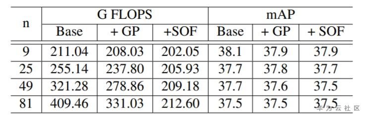 表3. Ablation Study.GP表示Group Pooling, SOF表示shared offset fields.