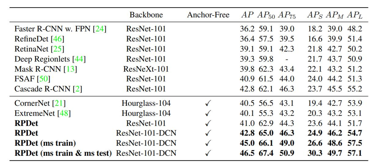 表1 RepPoint与SOTA算法对比