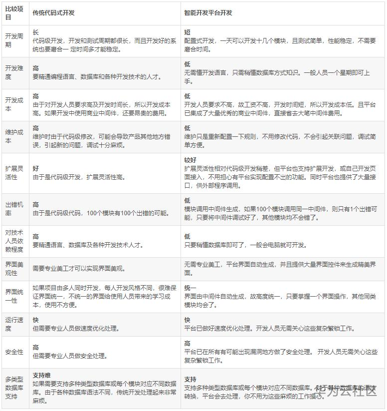 整理了一份快速开发平台与传统开发方式的详细对比表格,孰优孰劣一目了然。