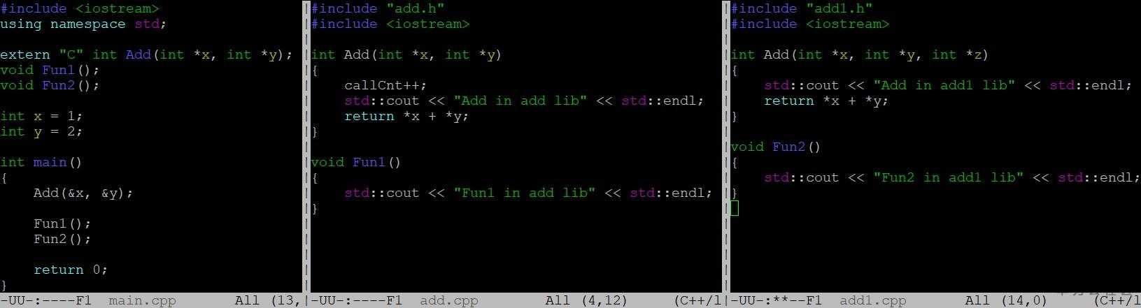 放在Add函数的处理上,当我们以g++ main.cpp libadd.so libadd1.so编译时,程序输出“Add in add lib”说明Add是用的libadd.so中的符号(add.cpp),当我们以g++ main.cpp libadd1.so libadd.so编译时,程序输出“Add in add1 lib”说明Add是用的libadd1.so中的符号,这时候问题就大了,调用方main.cpp中认为Add只有两个参数,而add1.cpp中认为Add有三个参数,程序中如果有这样的代码,可以预见很可能造成巨大的混乱。具体符号解析我们可以通过LD_DEBUG=all ./a.out来观察Add的解析过程,如下图所示:左边是对应libadd.so在编译时放在前面的情况,Add绑定在libadd.so中,右边对应libadd1.so放前面的情况,Add绑定在libadd1.so中。