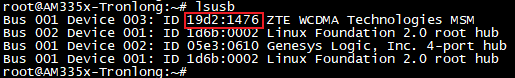 可执行lsusb命令查看4G模块VID,如下图所示。