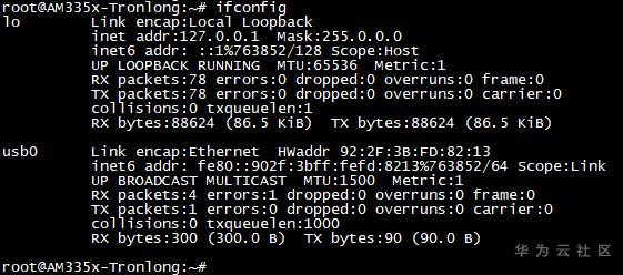 命令说明:<device>为设备节点,以"ls /dev/ttyUSB*"命令查看结果为准,重启评估板可能会变化。<new_network_card>为网卡,可用"ifconfig -a"命令查看,一般为usb0。
