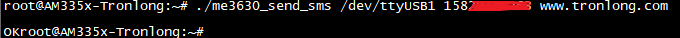 Target# ./me3630_send_sms </dev/ttyUSB1> 158******** www.tronlong.com