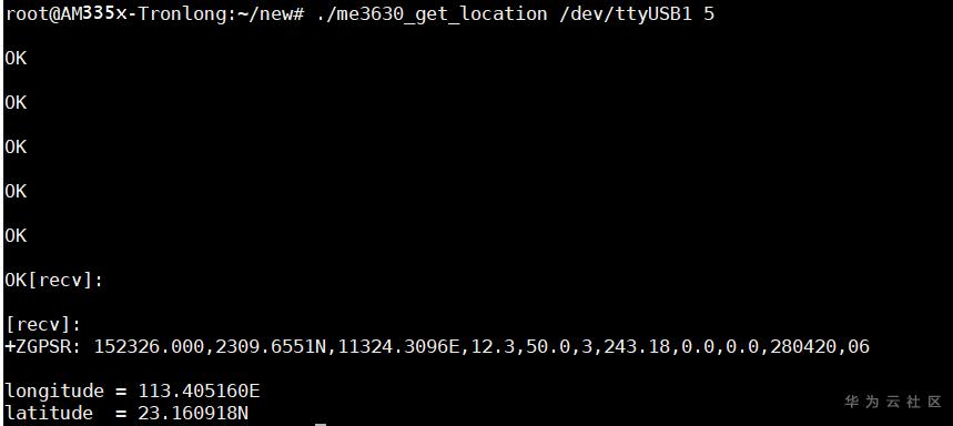 Target# ./me3630_get_location /dev/ttyUSB1 5
