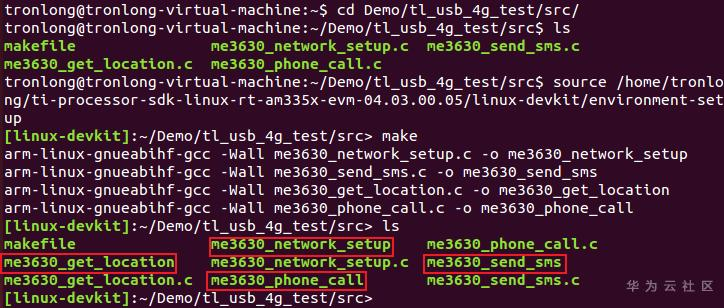 将tl_usb_4g_test的src目录拷贝到Ubuntu任意路径,进入src目录执行如下命令加载Linux Processor SDK环境变量并编译测试程序。