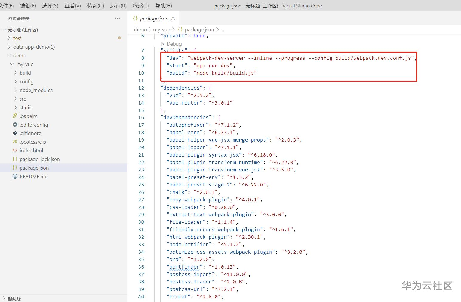 这个Vue项目的package.json 这个文件里记录了一下 这个项目的基本信息 像是作者、工具等