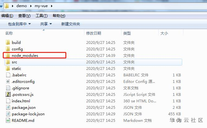 你可以在你选择的文件加下看到这些文件 (其中node-modules是依赖安装后出现的,没安装依赖以前是没有node_modules文件夹的)