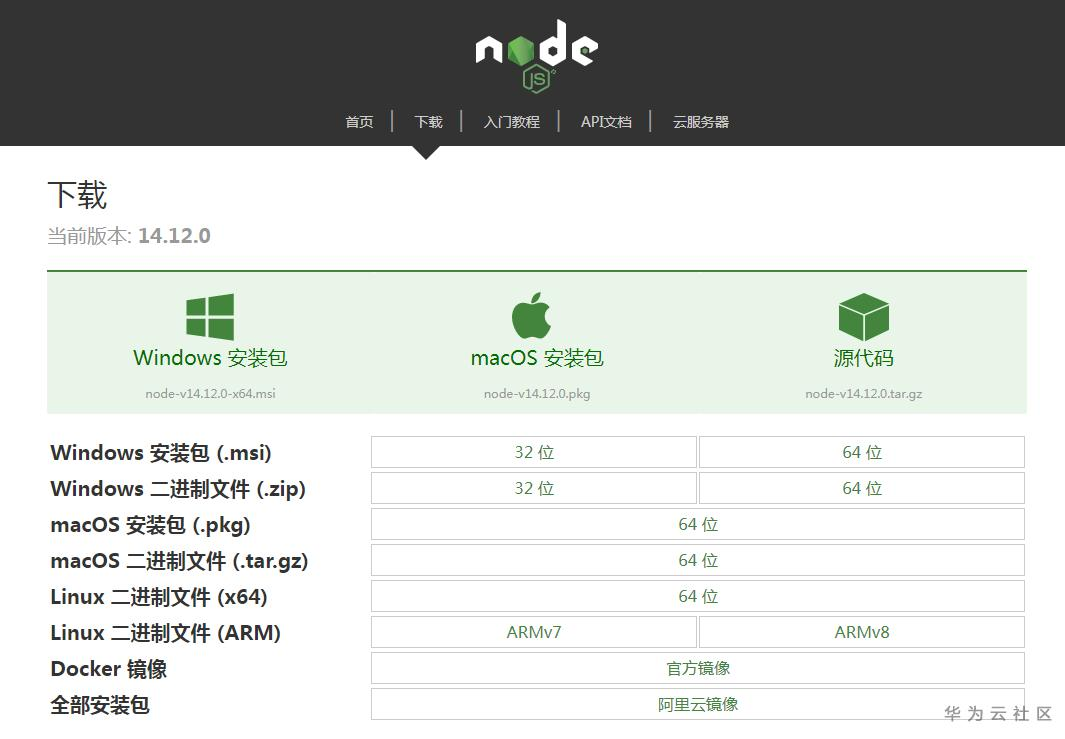 nodejs下载地址http://nodejs.cn/ 选择与你电脑匹配的安装包进行安装