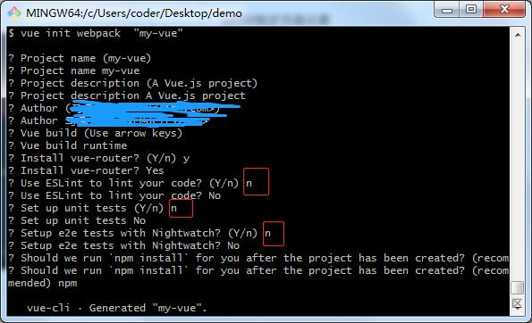 vue init webpack "my-vue"