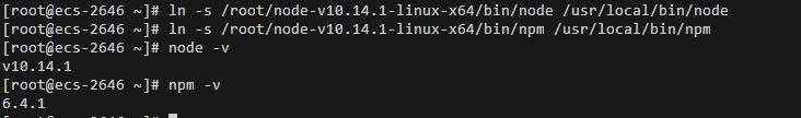 ln -s /root/node-v10.14.1-linux-x64/bin/node /usr/local/bin/node