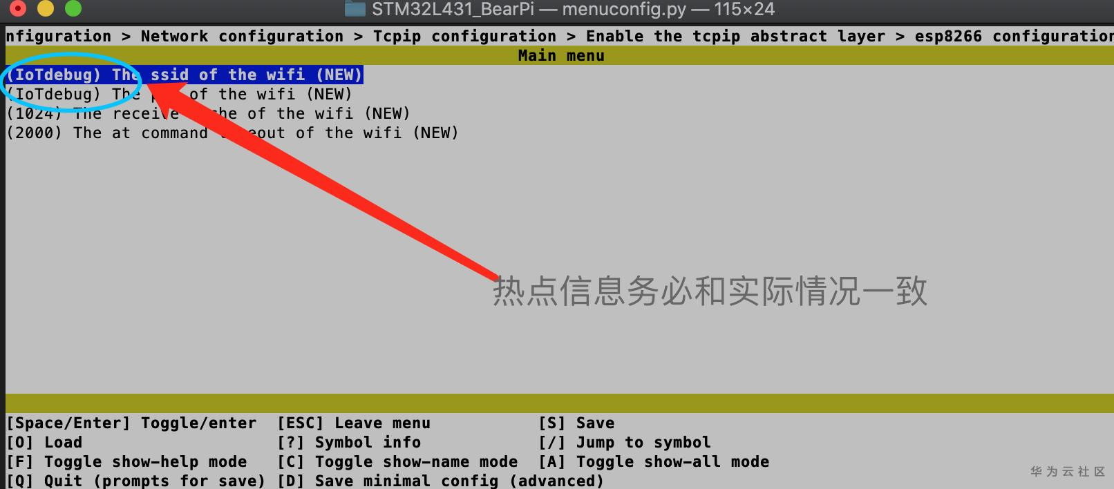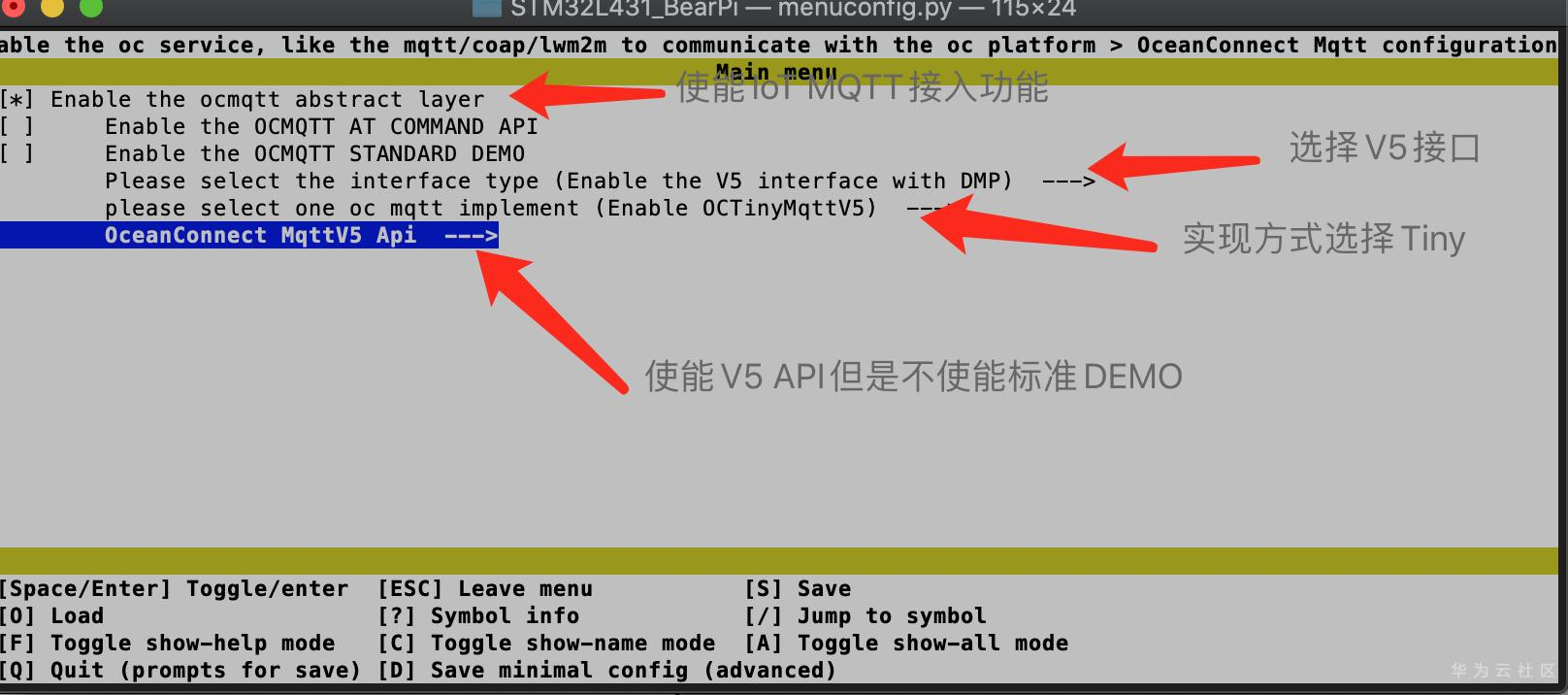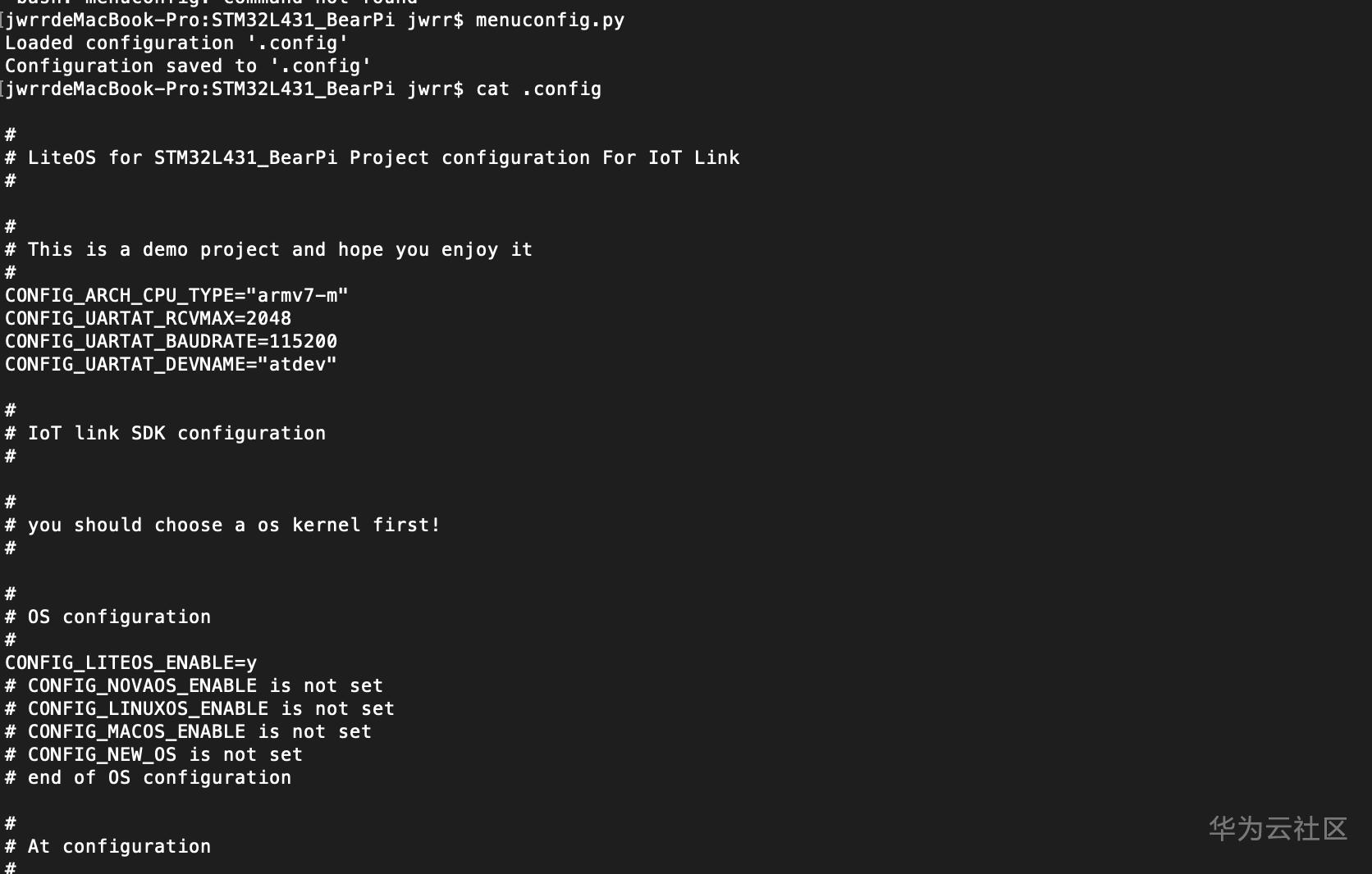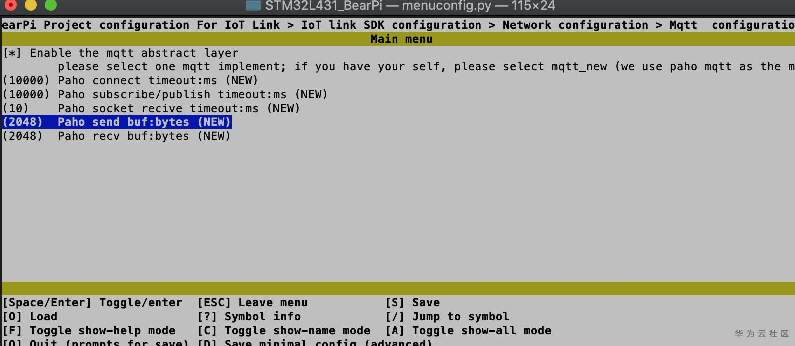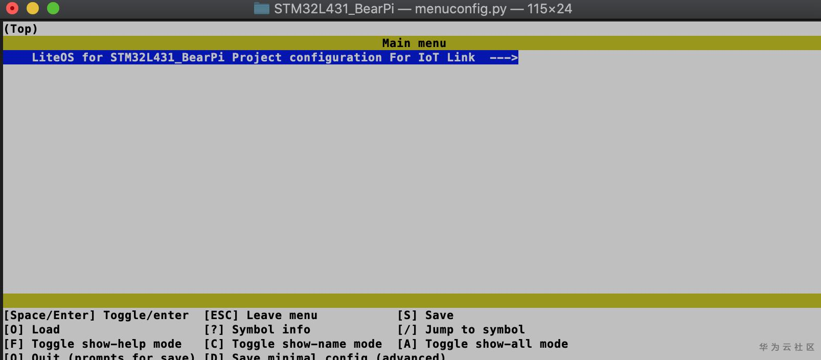 进入到target/STM32L431_BearPi目录下,输入menuconfig(macos或者linux输入menuconfig.py)即可进入到配置界面。