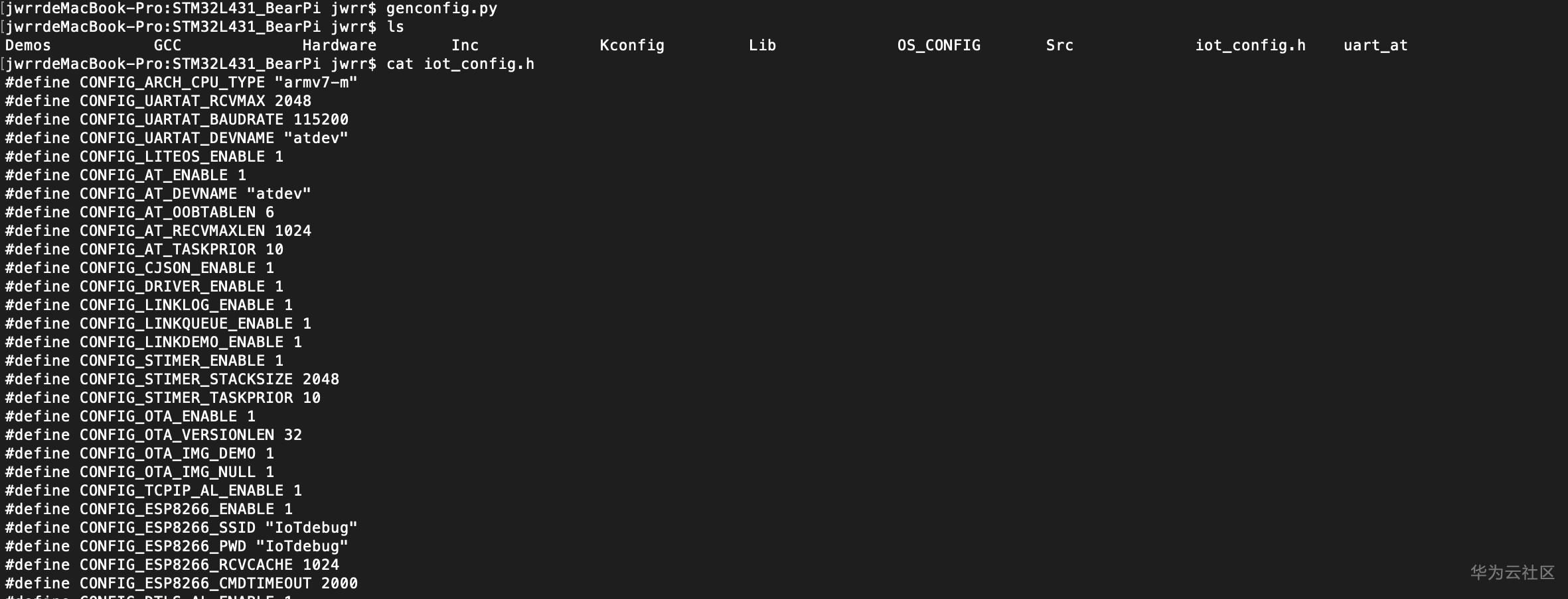 再输入genconfig(genconfig.py)会生成或者更新iot_config.h文件。Makefile依据.config文件选择哪些组件编译;编译器会根据iot_config.h文件决定怎么编译这个组件。
