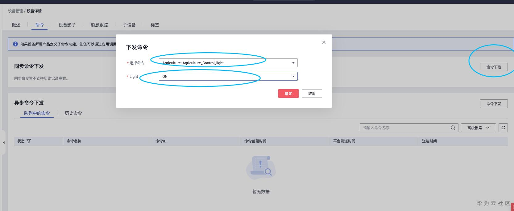 在命令中选择同步命令下发,可以观测到端侧设备可以接收到相关的命令。