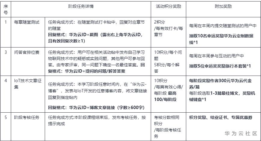 当排名节点处出现同分时,我们的评判标准为:结业考核>IoT技术文章>问答官排位赛>每章随堂测试打卡