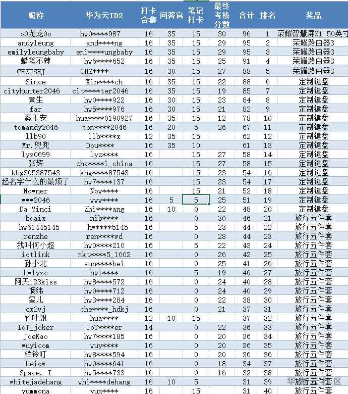 【IoT物联网开发全栈成长计划·第一阶段】最终积分排行榜成绩出炉!