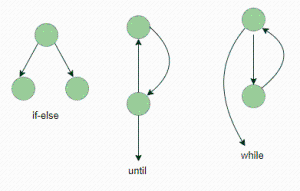 它是一个由节点和边组成的定向图。每个节点代表一个语句序列,或一个决策点。一个谓语节点是代表一个决策点,它包含一个条件,在这个条件之后,图就会分裂。区域以节点和边为界。