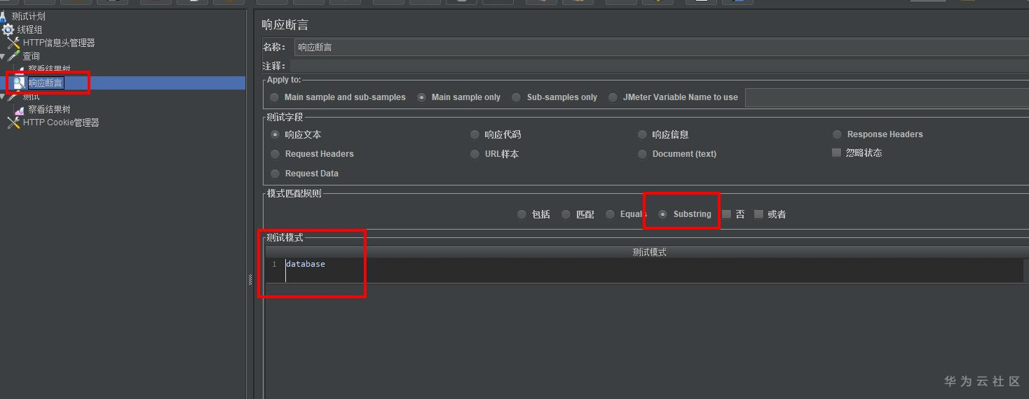 右键HTTP请求->添加->断言->响应断言