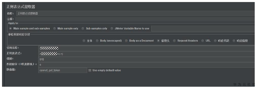 通过正则表达式提取器提取需要的Toekn值。右键线程组->添加->后置处理器->正则表达式提取器