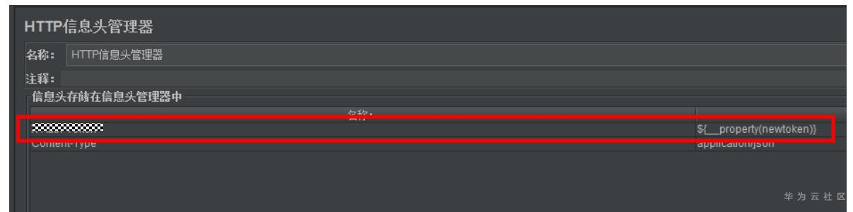 放置在HTTP信息头管理器里就行,将变量token使用如下。${__property(newtoken)}