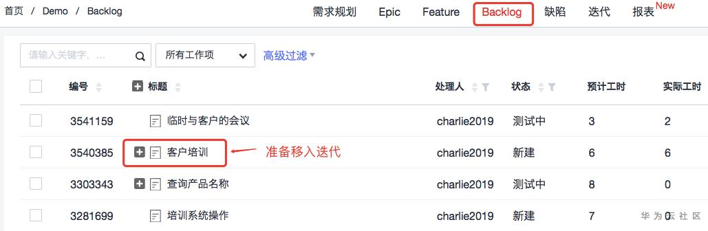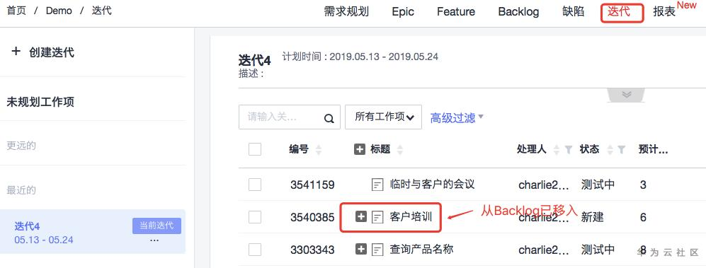 最后,从迭代中选取差不多工作量的低优先级工作项移回到Backlog中,即在DevCloud中完成了工作项的等价交换。