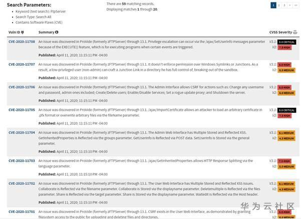 https://nvd.nist.gov/view/vuln/search-results?query=FtpServer&search_type=all&cves=on
