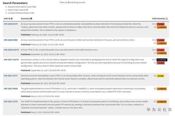 https://nvd.nist.gov/view/vuln/search-results?query=pure-ftpd&search_type=all&cves=on