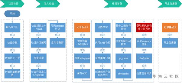 包括初始阶段,准入检查,环境准备,停机,备份,升级,update catalog,提交8个阶段。
