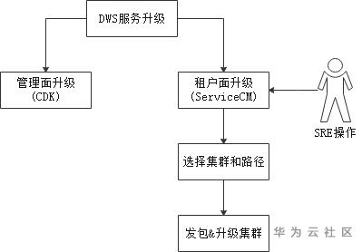 租户面升级在ServiceCM平台由SRE操作,操作可分为DWS Guest升级和数据库内核升级: