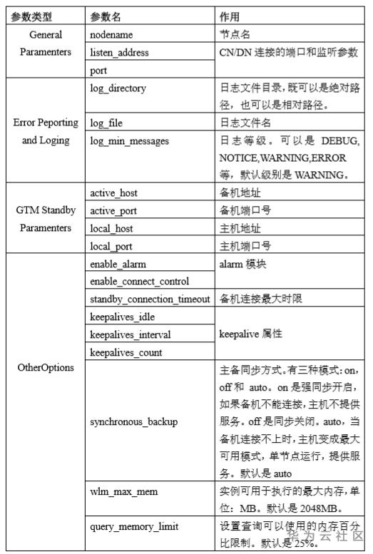 gtm.conf是GTM的配置文件,GTM启动时会解析该文件的参数,具体参数含义如表1。
