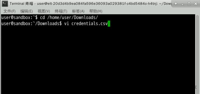 # 查看密钥 cd /home/user/Downloads/ vi credentials.csv