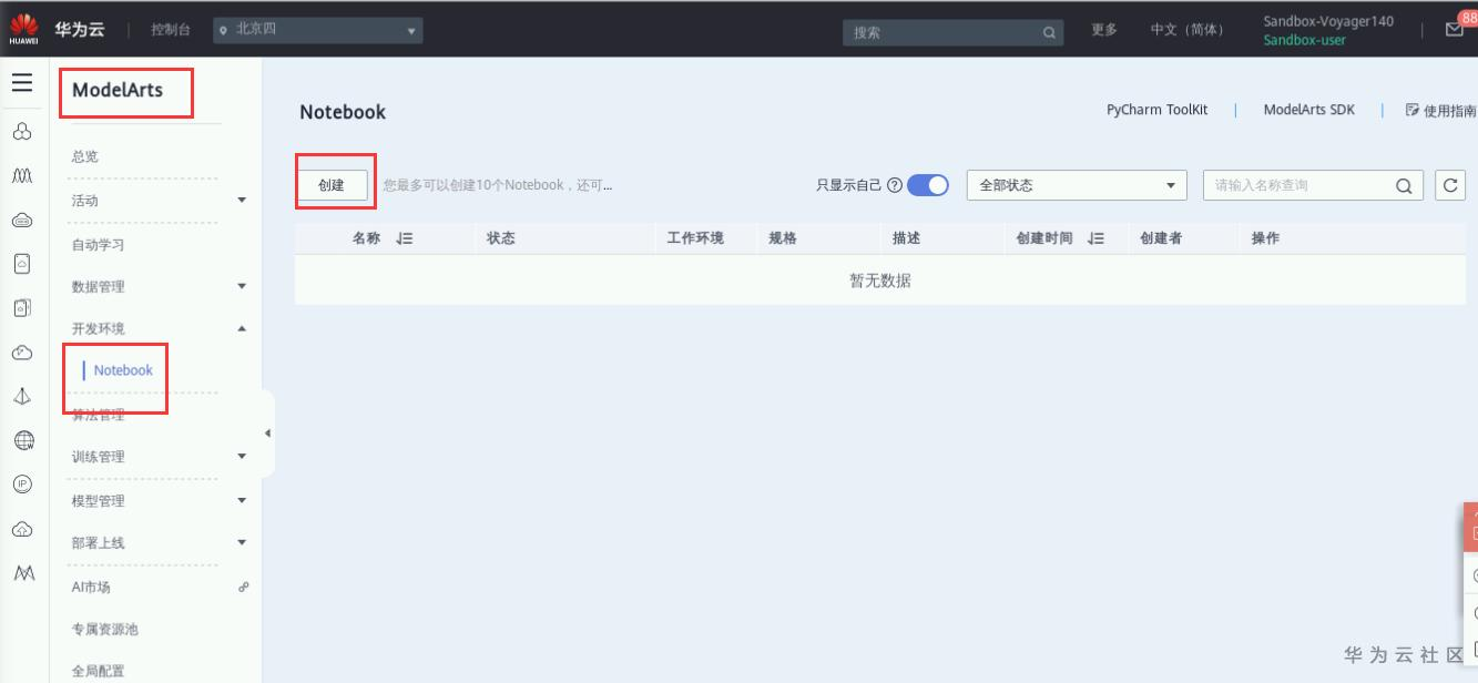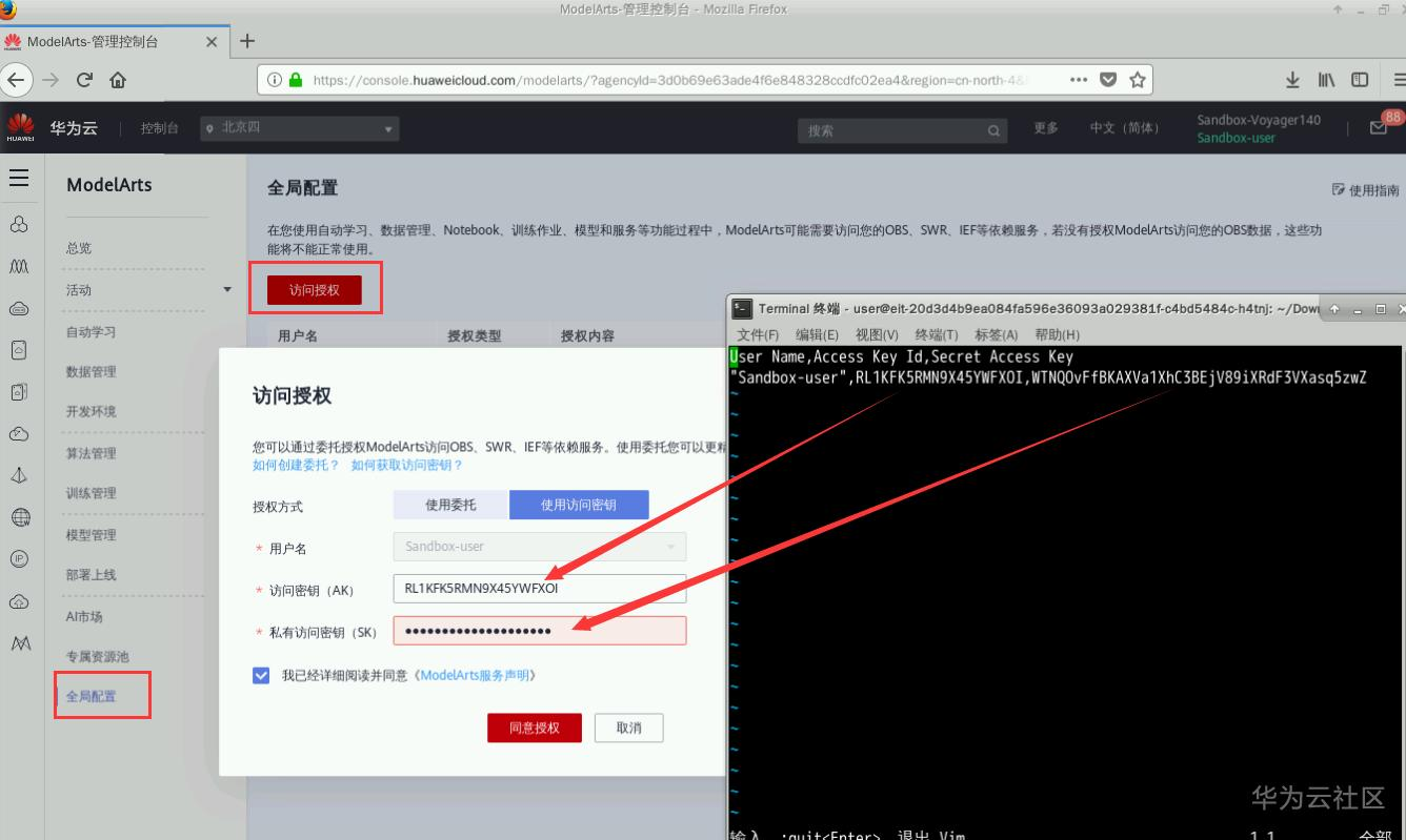 使用第一步设置ModelArts全局配置,配一次即可