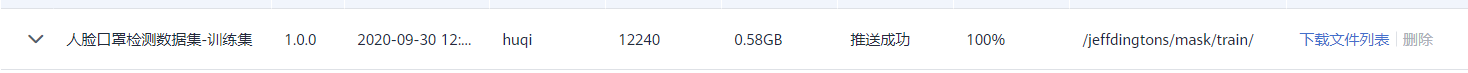 等待页面中的这的这一栏的状态变为推送成功后就说明数据集已经导入完成。这时候我们就可以去Modelarts中的数据管理->数据集功能中创建数据集了。