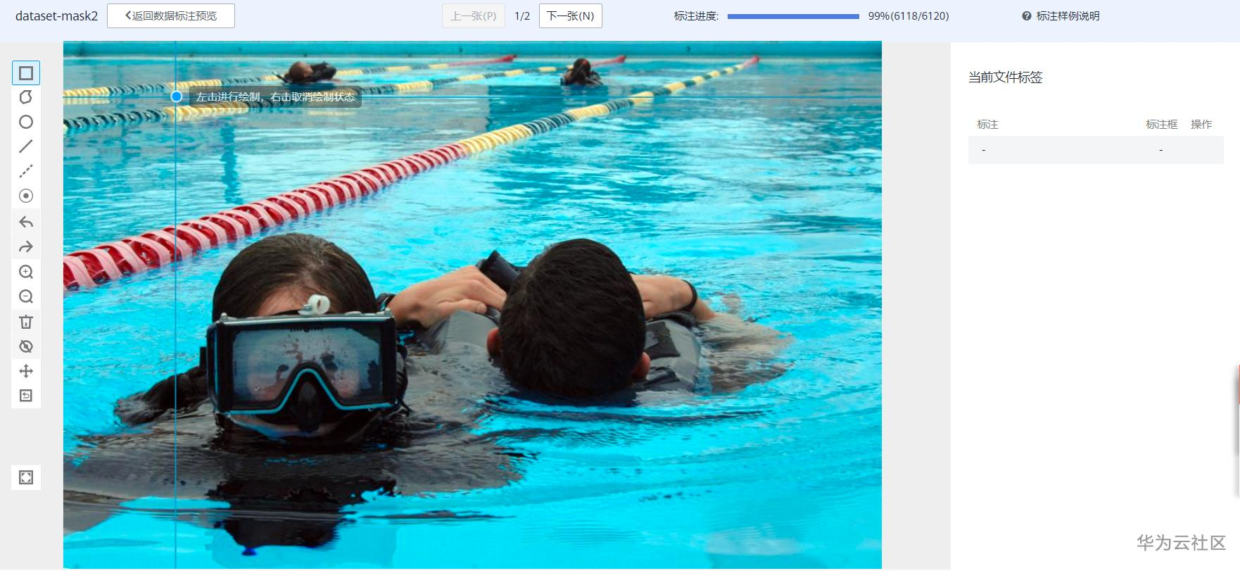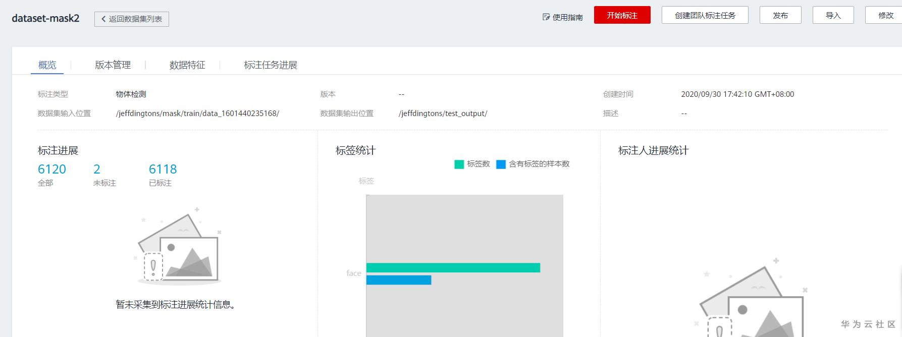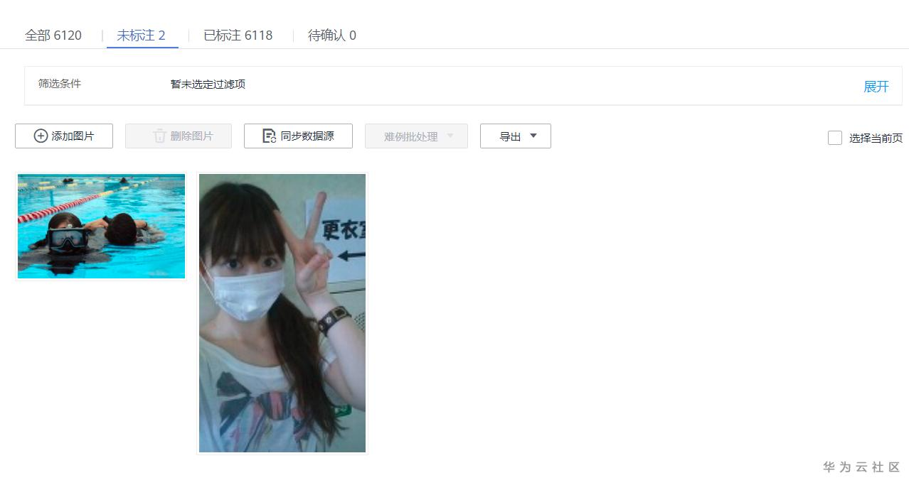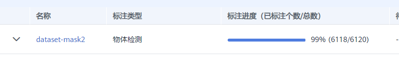 等到页面中标注进度变为6118/6120时候,说明系统已经导入和标注完数据了。可能会有人问为什么不是6120,而是6118呢。因为还有2个图片系统没有标注成功,这时候就需要我们进行手工标注了。点击数据集名称,进入到数据集页面
