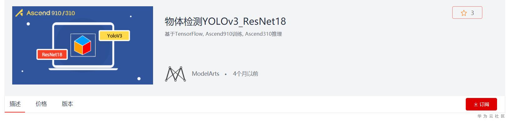 这一次算法那我选择YOLOv3_ResNet18(物体检测/TensorFlow/Ascend910训练)算法进行模型训练
