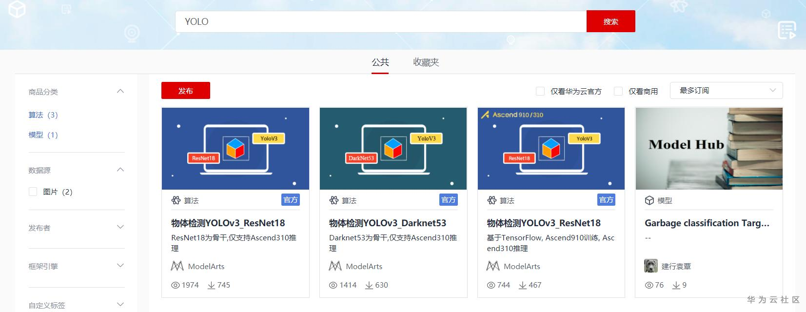 进入到AI市场,在搜索栏搜索YOLO,就会出现所有和YOLO有关的算法