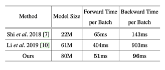 该方法在多个英文基准数据集取得了较好的结果,具体结果可参见论文。在速度上作者和两种基于attention的方法进行对比有一定的优势,如表1所示。