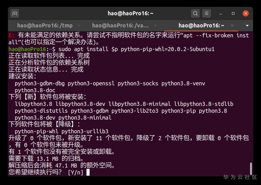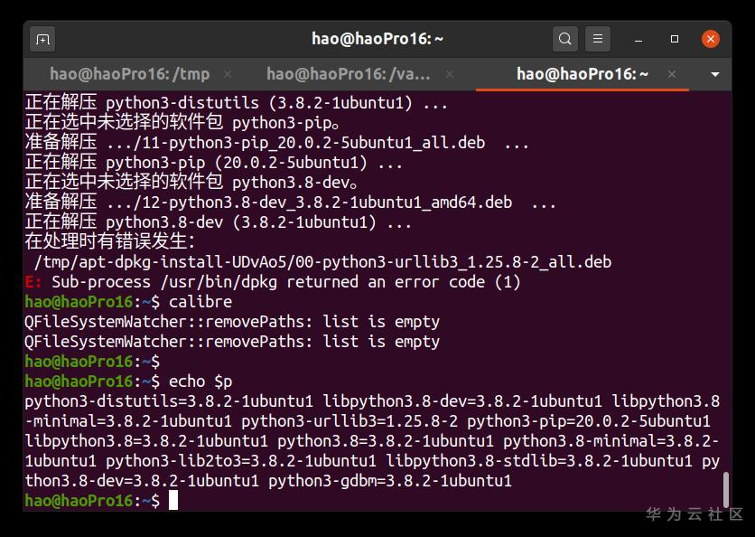 查看/var/log/apt/history.log,看到python3 有一些包从3.8.2 升级到 3.8.5