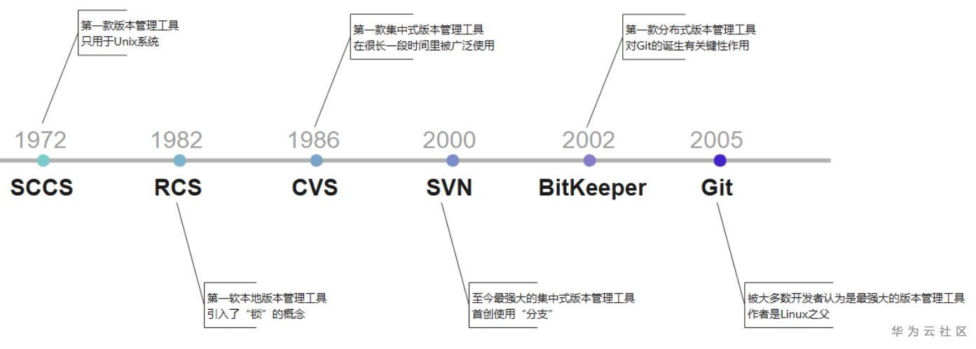 上图是版本管理发展史的里程碑图,下面我们将其分成四个阶段详细来说说。
