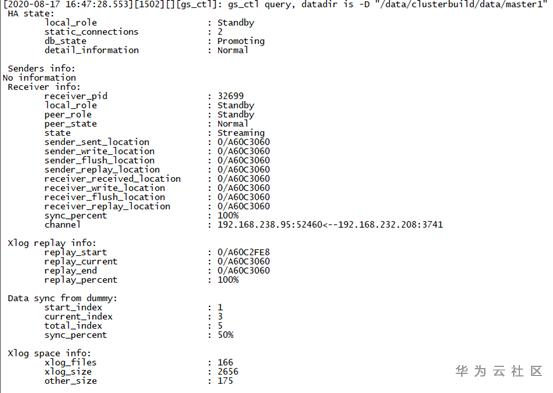 从以上这些数据同步过程中,我们发现表现在运维上一个明显的特点是,这些过程有可能会时间花费较长,一旦同步过程中出现异常问题,其内部关键过程信息输出对于问题分析定位十分重要。因此,GaussDB(DWS)提供了丰富的系统函数、视图、工具等可以直观地对同步进度进行跟踪,尤其是为方便定位人员使用,gs_ctl工具已集合了大部分相关系统函数的调用,可做到在任何时间,从未启动、启动、重建到运行时的关键信息显示。