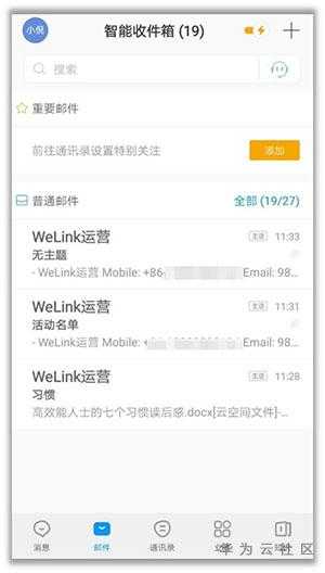 WeLink的智能邮件功能让你1秒就能找到重要邮件。WeLink的邮箱主要有以下功能: