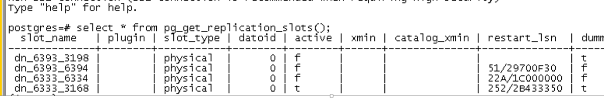 方式二:连接该备DN产看redoLSN位置,select pg_last_xlog_replay_location()