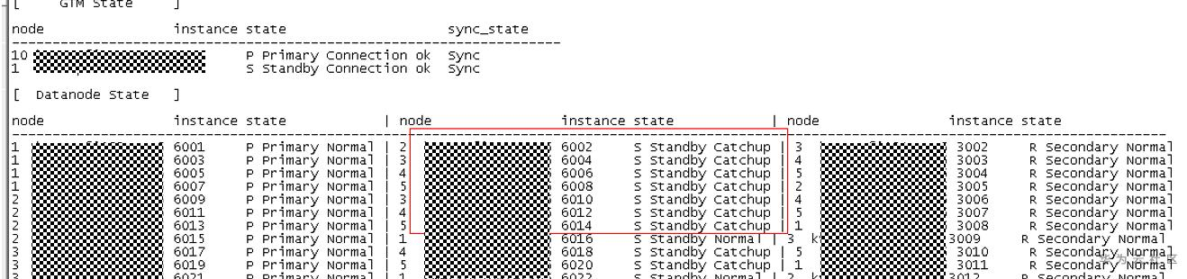 业务语句反应较慢,查看集群状态有部分实例处于catchup状态